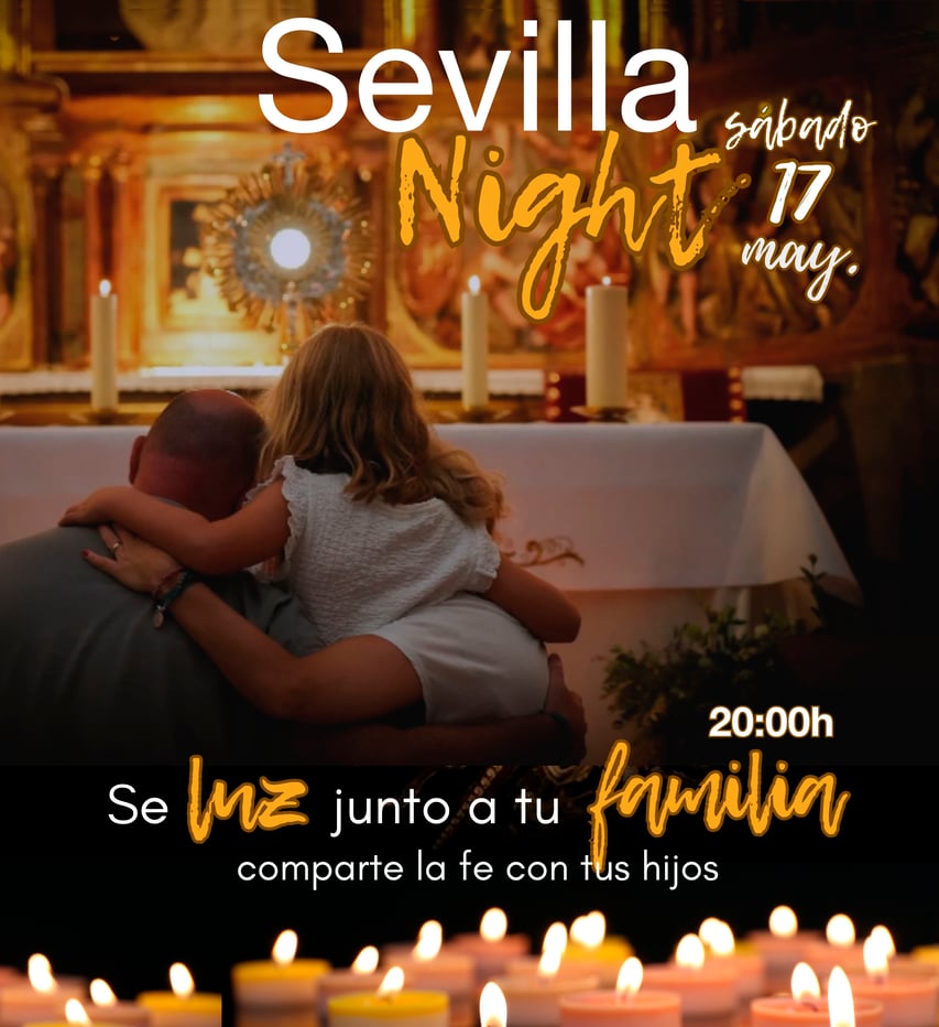 Todo gira en torno a una Iglesia, y esto es fácil entenderlo. Simplemente dentro de la Iglesia está Cristo, presente en la EUCARISTÍA. La Iglesia simboliza la casa donde está Jesús y donde todo el mundo intenta acercarse a Él; es el lugar donde llevan los camilleros al paralítico. El es el único capaz de obrar el milagro y tocar los corazones. Solnight o Sevillanight es una Misión Eucarística.