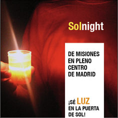 Una vez al mes tendremos el Solnight, que es una acción misionera en torno a la Eucaristía, donde un grupo de jóvenes participa de la animación y acogida dentro de la Iglesia, otros rezan por los misioneros y otros salen a la calle al encuentro del otro... ¿Quieres redescubrir, vivir, expresar tu fe junto a otros jóvenes?
